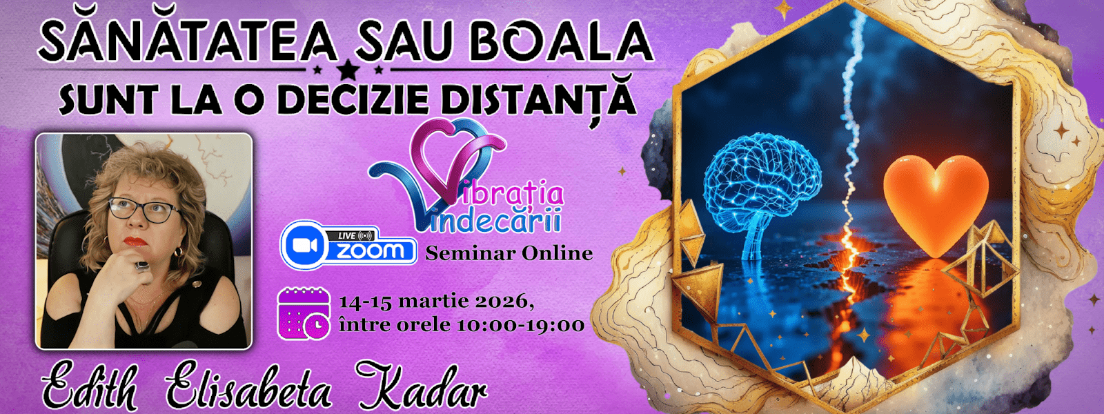 Despre cum ne influențează viața și sănătatea deciziile pe care le luăm (chiar și inconștient), de ce alegem atât de des variante care ne duc în nefericire și boală, cum să recunoaștem momentul acela important care ne poate schimba viața, voi vorbi în cadrul unui atelier online care va avea loc sâmbătă și duminică, 14-15 martie 2026 pe platforma Zoom. Te aștept cu drag!